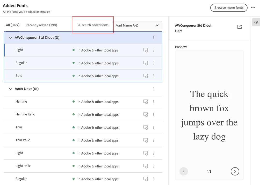 Search function in Adobe Font Manager