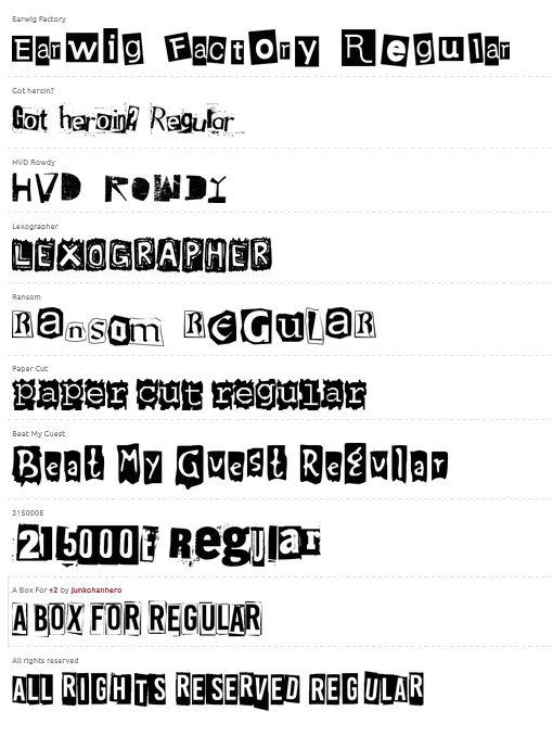 I am on the hunt for some grungy, vintage style ransom / extortion letter fonts for a poster I'm doing.