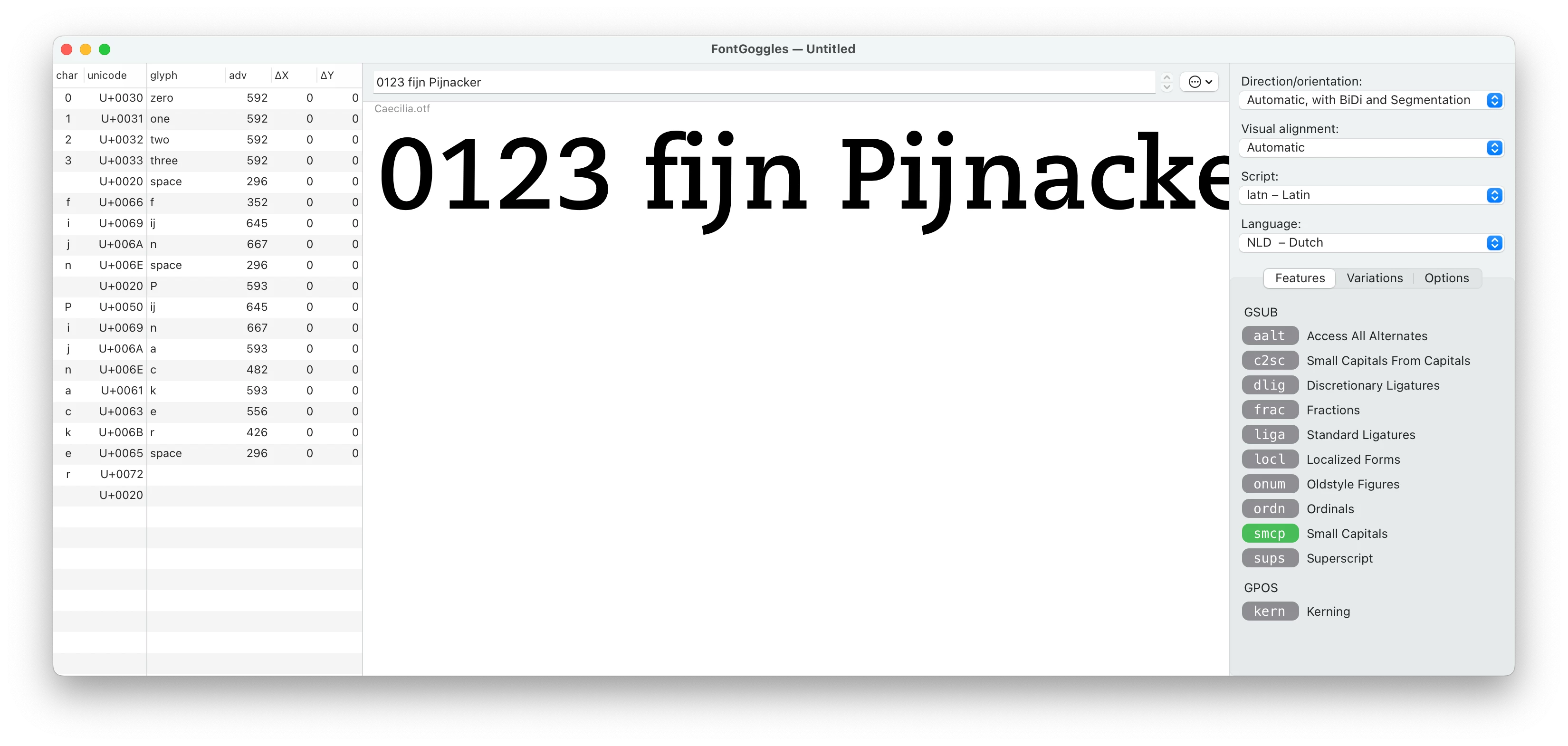 When I use Caecilia LT Pro in InDesign, it is not possible to use small caps, allthough they cán be found in the Glyphs panel. So it is possible to ‘type’ a word by double-clicking on the small caps in the glyphs panel, but changing text to small caps in the usual way does not work.