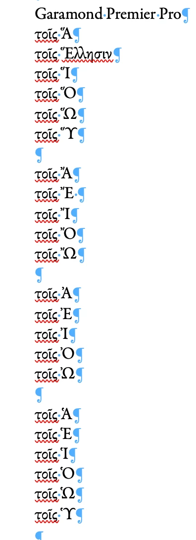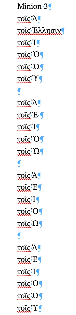 Hello, I wanted to inquire about a seemingly weird behavior of Minion 3 / Minion Pro when they are used to typeset polytonic Greek. Please look at the image attached below.