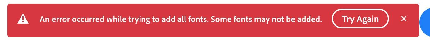PPixenite Pvt. Ltd.ParticipantForum|Forum|2 years agoSeptember 13, 2023QuestionUnable to install adobe fontsForum|Forum|2 years agoSeptember 13, 20231 reply151 viewsI am unable to install adobe fonts since many days, i tried diffrent methods like reinstaling the app and creative cloud but it's not working. shows the same problem again and again.