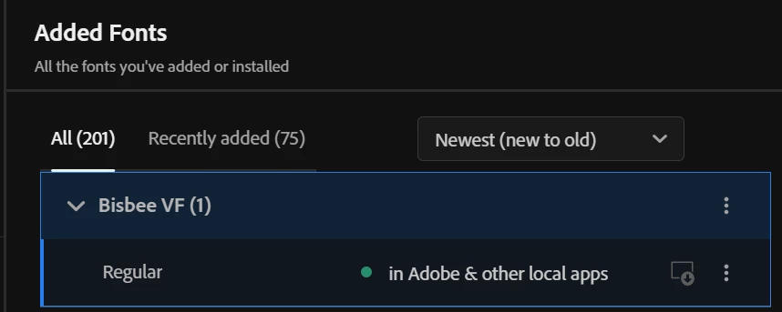 I downloaded this font- https://fonts.adobe.com/fonts/bisbee-variable and it is reflected in my creative cloud, but in any of the adobe apps like expess or premiere pro I am not able to use it why ?