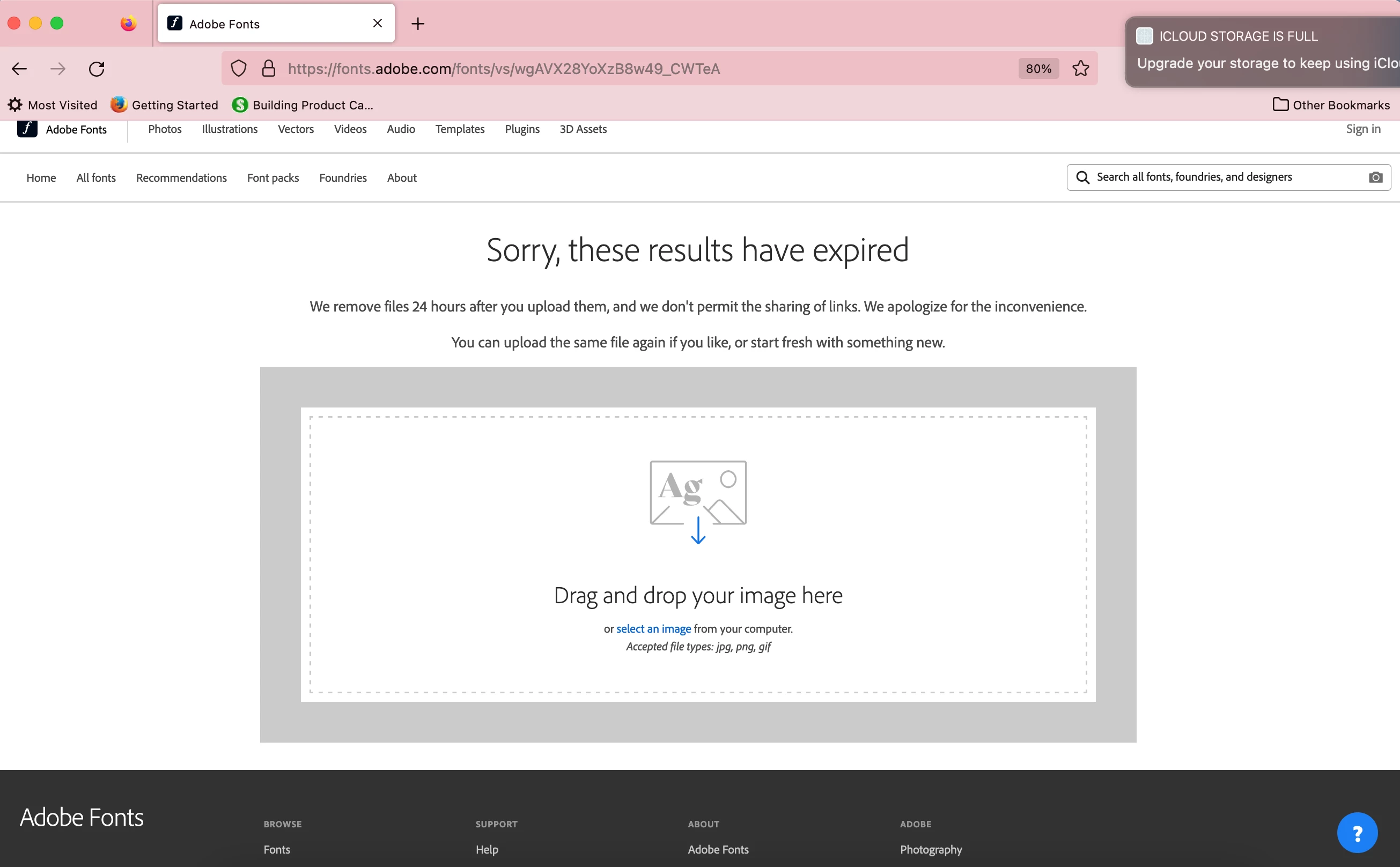 Hi. It's been a few months since I've been doing visual research on adobe fonts. It scans the image and stops right there. Nothing else happens, it gets stuck, it doesn't advance to the part of delimiting the box.
