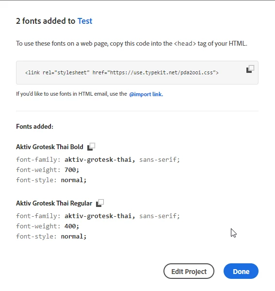 I have try to add "Aktiv Grotesk Thai" font to my web project and it's work only on english character font not apply on thai character