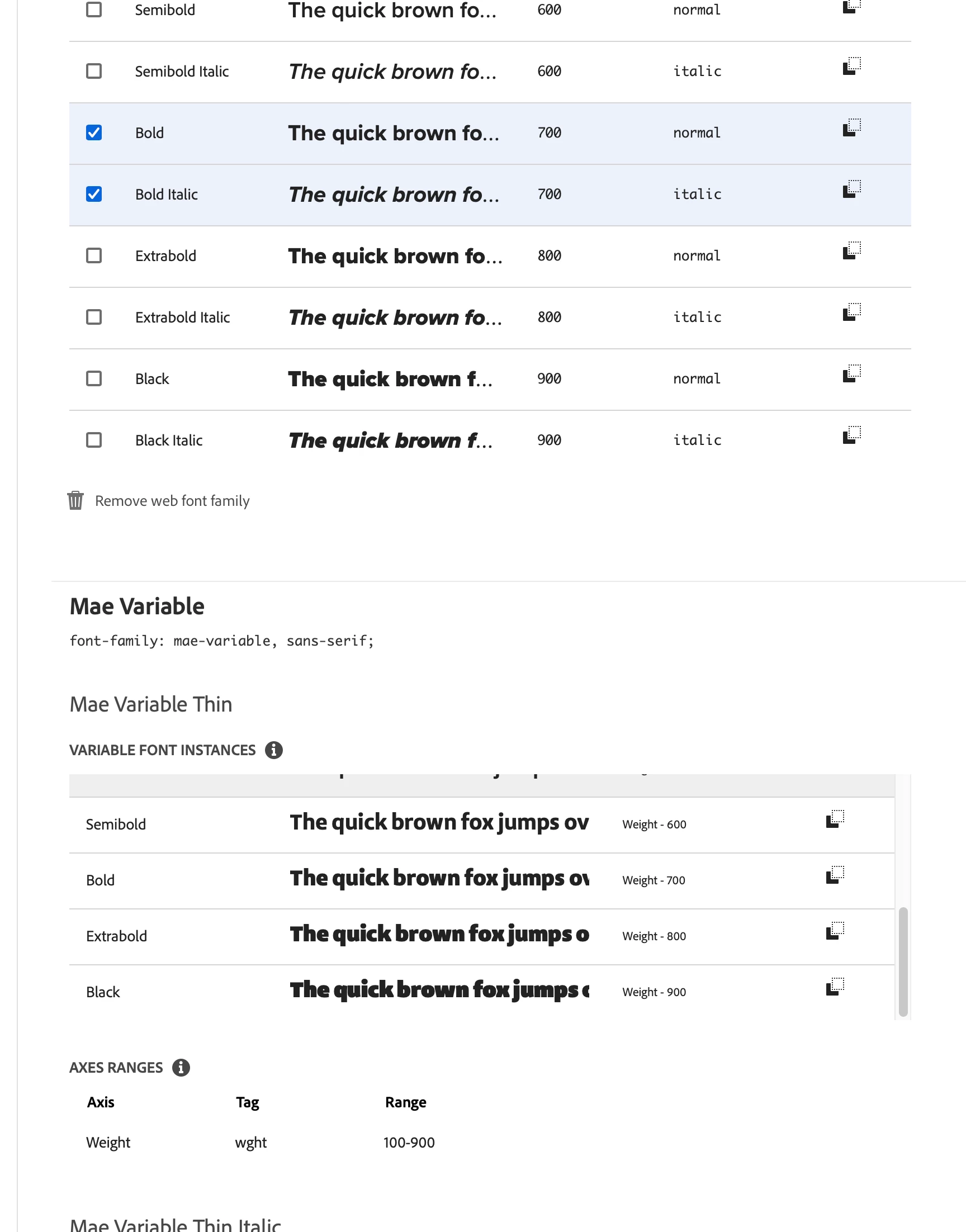 Before you ask, no, I didn't select the weights in the webfont kit, because on that font, weight selections are not available: