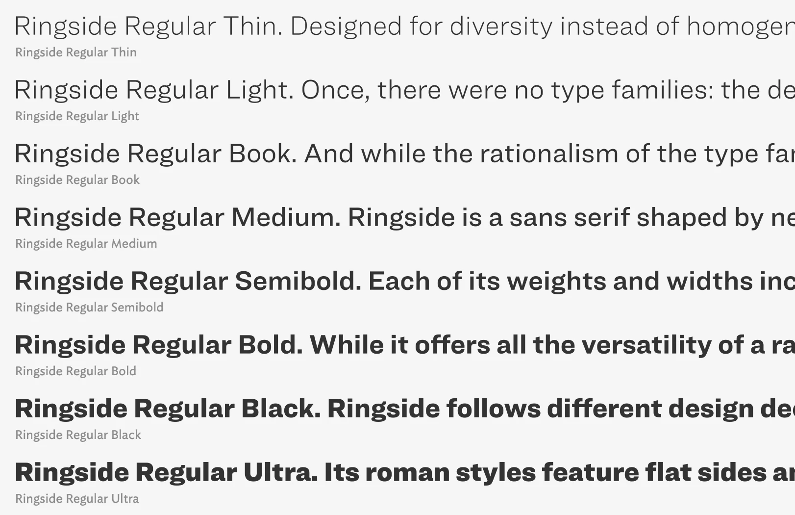I'm having some trouble finding a font that's really close to this font called "Ringside". Here's the font.