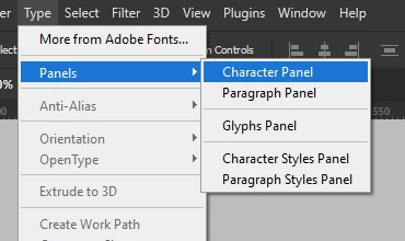 I've been working on a project in Adobe Photoshop. I'm trying to customize the typography of my design, but I'm having trouble finding where the font options are located within the software. I've searched through various menus and panels, but I just can't seem to locate the font settings. I'd really appreciate it if someone could guide me on how to access and make use of the available fonts in Adobe Photoshop.