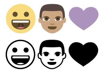 Edit: Here's a simple example of EmojiOne characters in AI CC 2020. The B&W images were outlined in AI CC 2015 and pasted into 2020. Adobe, just give us a "Black and White" option for this font.