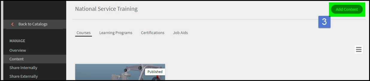 I am working in Adobe Captivate Prime and I have created several catalogues and loaded content. How can I add content to an existing catalogue?