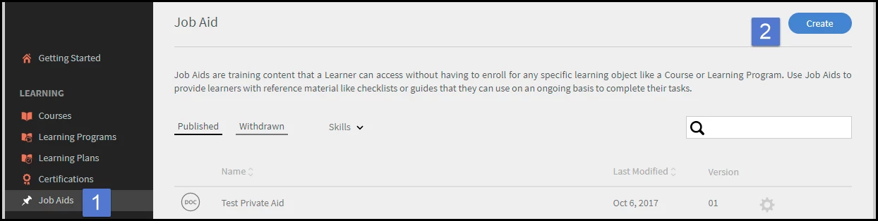 Select Job Aids then Create