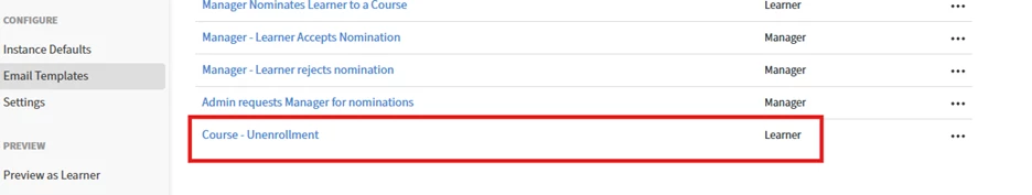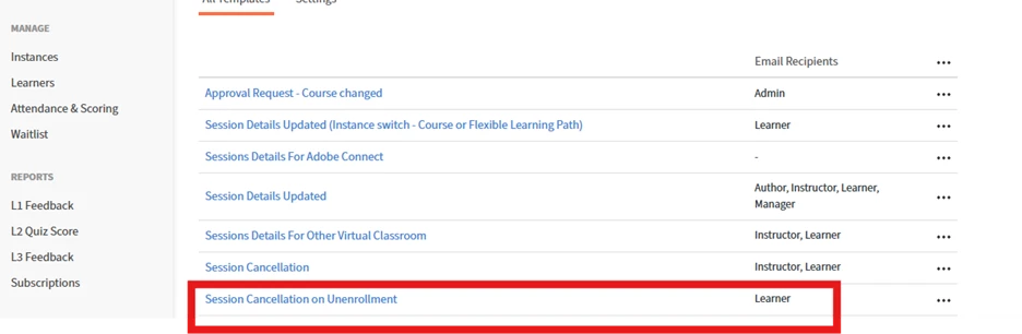 - In such scenarios, the administrator must enable the required email templates at the course level to trigger both the session cancellation email and the course unenrollment email.
