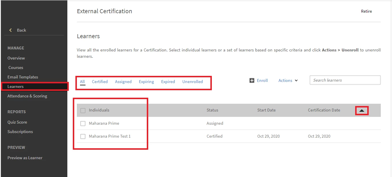 We're trying to figure out how to figure out which all learners have sucessfully completed the external certifications, basically their names and E-mails.