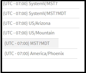 Mountain Time Choices (targeted city Tempe, AZ)