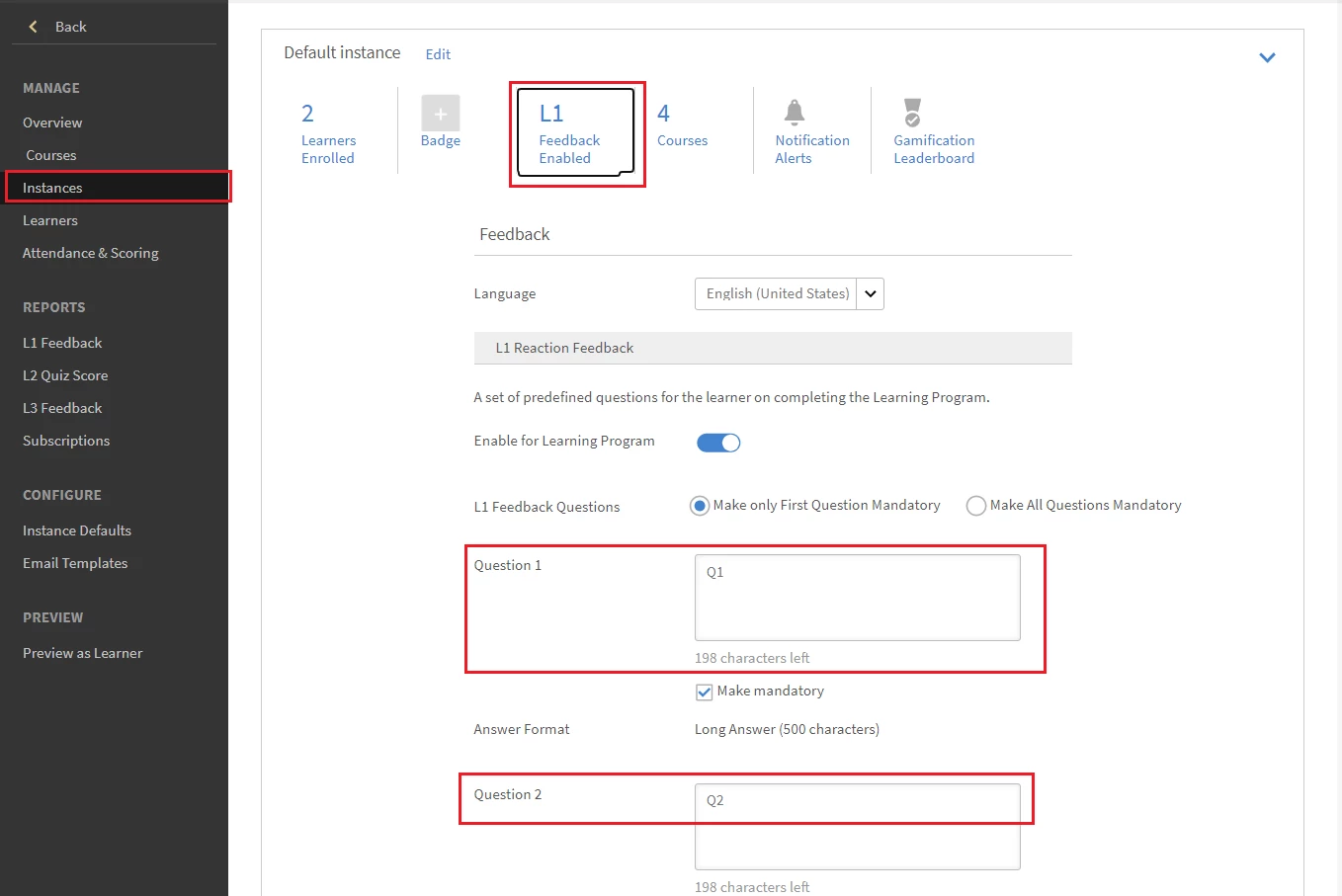 I can see that you can edit the questions but I would like to have different questions depending on the course. From what I can see, you can only have the same L1 questions for all of your courses.