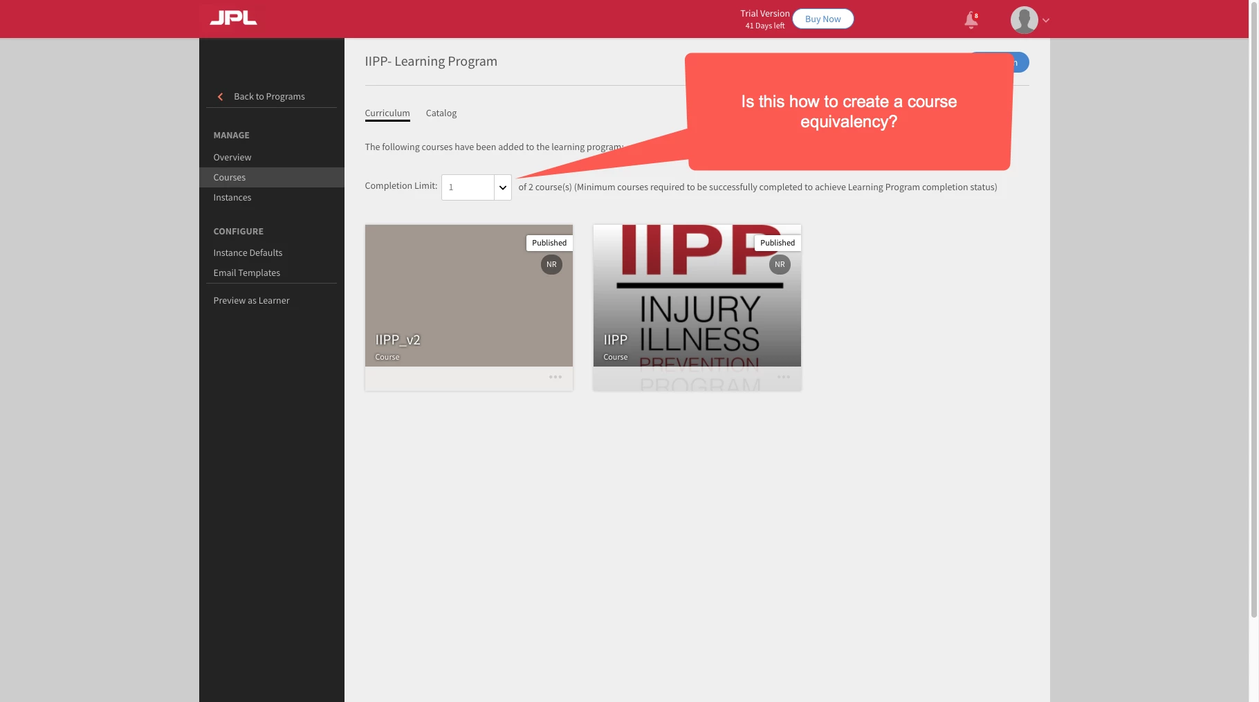 I would like to set up two different classes in the system and make it to where completion of either course will meet the requirement.