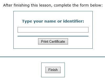 (I also have the option to enter a name for a certificate to print when the module is completed.)