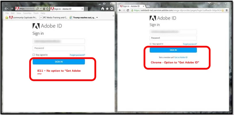 I have a computer where a new user failed to obtain a new Adobe ID. Ever since that time, we've not been able to see the Get Adobe ID link on the login page, under IE11.