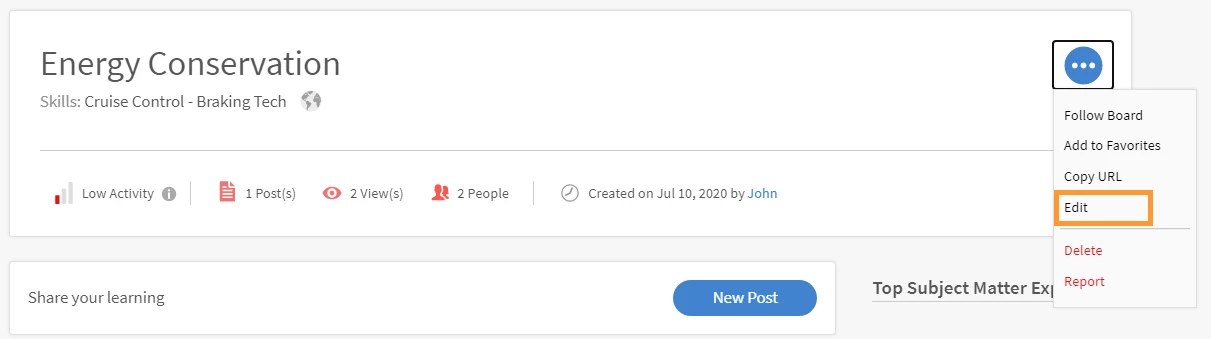 How to edit a Board in Social learning in Captivate Prime?
