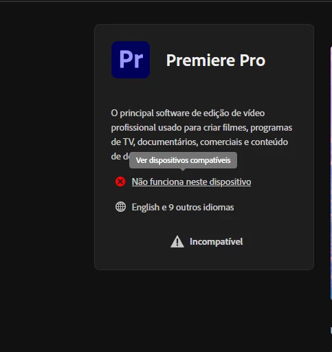 Não consigo instalar o ADOBE PREMIERE PRO