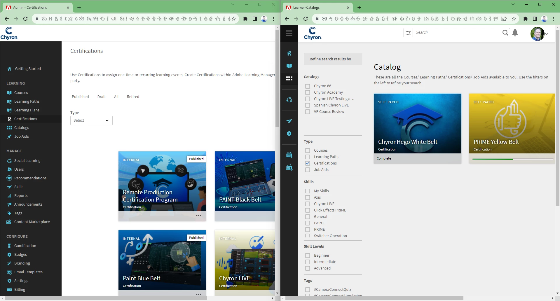 For clarity, I have attached screenshots of both my Admin and a Learner Screen. Can someone guide me on how I can make all the certification types available to all learners? Your assistance will be greatly beneficial.