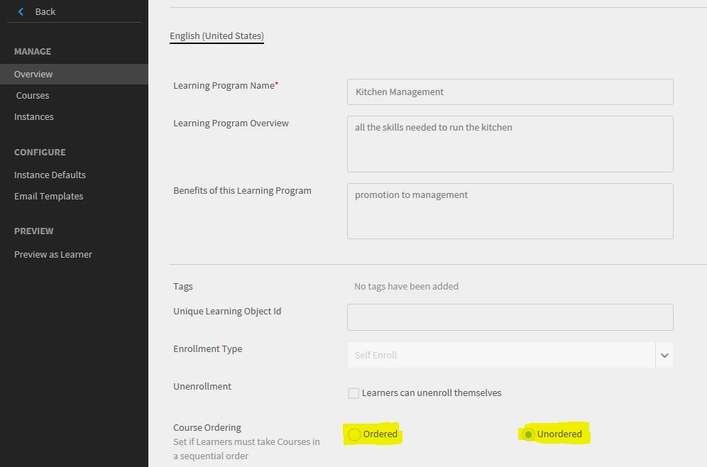 I have a training program set up with 5 separate courses inside. I would like the learner to complete these courses in a specific order and not enroll in a course until they have completed the prior one (i.e. learner cannot start course #2 until they have completed #1). I'm really at a loss here and have tried looking up the answer/playing around with the setting in Prime. Any help would be greatly appreciated!
