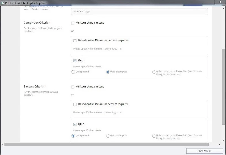 But, Prime has it own settings that override Captivate. How can I prevent that? Should I enable "On Launching Content" only?
