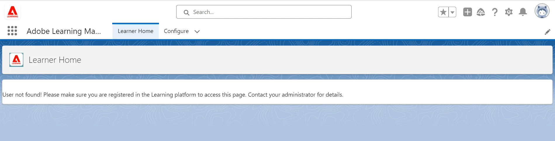 User not found! Please make sure you are registered in the Learning platform to access this page. Contact your administrator for details.