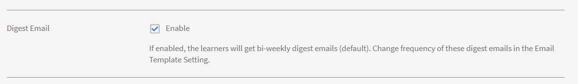 On the Email templates > Settings page, the Admin can change the frequency of Digest Emails to be sent to learners.
