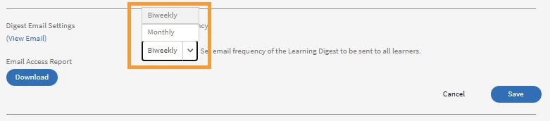 - Biweekly: If you set the frequency to Biweekly, learners receive the email once every two weeks.