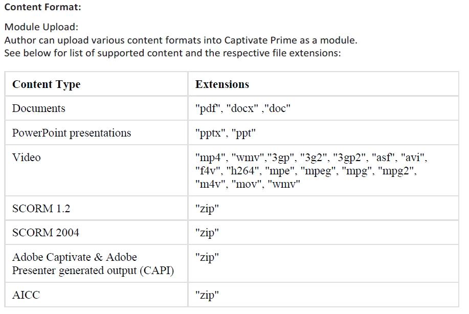 You just need to convert it to a supported file type or use an eLearning authoring tool. I would either create an MP4 of the audio file or use something like Presenter or Captivate to output a supported eLearning presentation. Here are the supported file types in Captivate Prime: