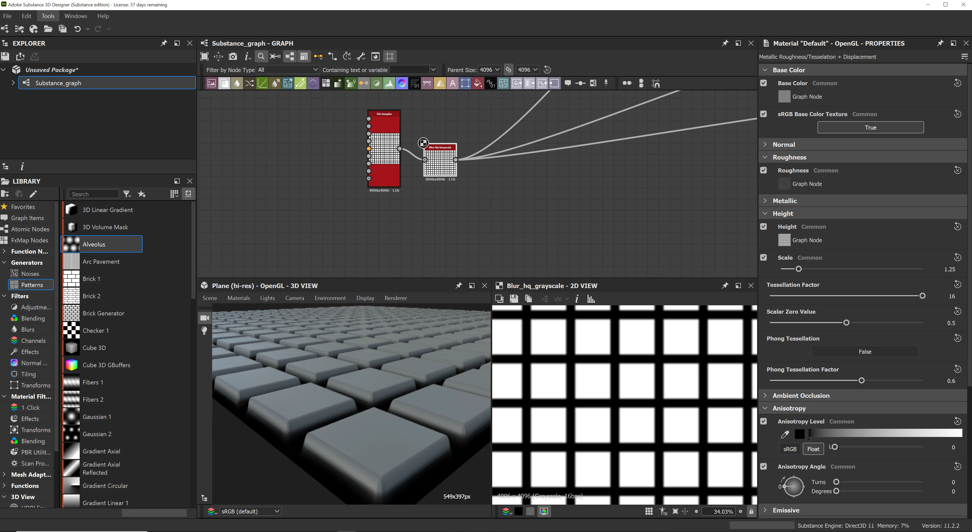 Sill learning the basics via tutorials and documentation, but i've not yet come across anything that explains why, inspite of a high tessalation value, HQ blur node on my shapes, hi-res plane object, I am still getting aliased edges in my 3D view. At this point is it simply as basic as the 3d viewport focuses a high quality preview on the part of the model closest to the virtual camera, and then lowers tesselation for the part of the object further back in space? I feel like in tutorials I don't see jagged edges in the material author's work, even in the building process. I've attached a shot of the settings I believe are most relevant, aware that I could be missing something major. I'd prefer not to add many hq blur nodes in my graphs if possible.