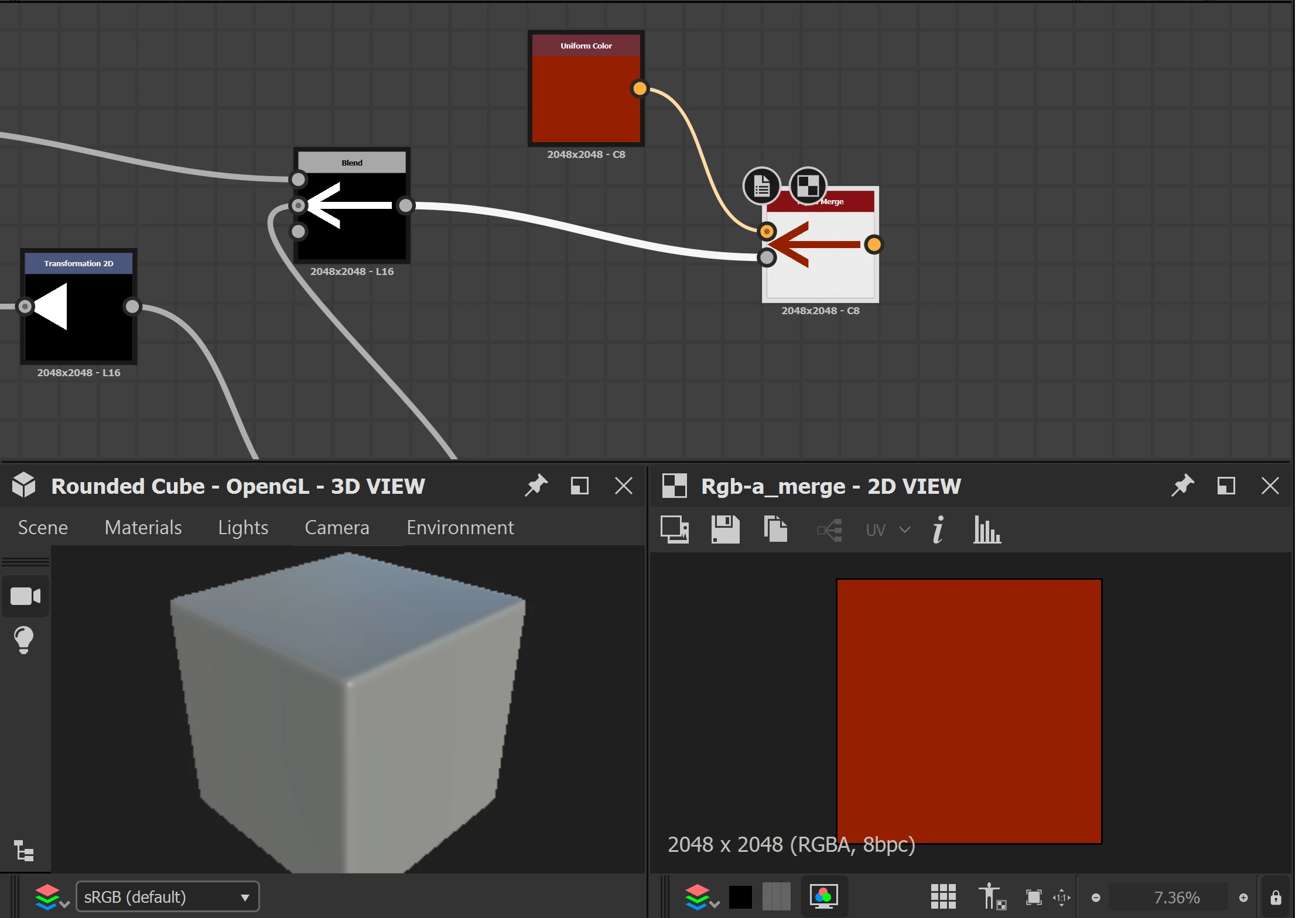 Hey all. I'm following one of the official designer tutorials and I'm having some inconsistent results. For example, when I use the alpha merge with a color and my greyscale arrow, only the solid colour shows up in the 2D viewport. In the tutorial, the arrow shows up. Any idea what I'm doing wrong?