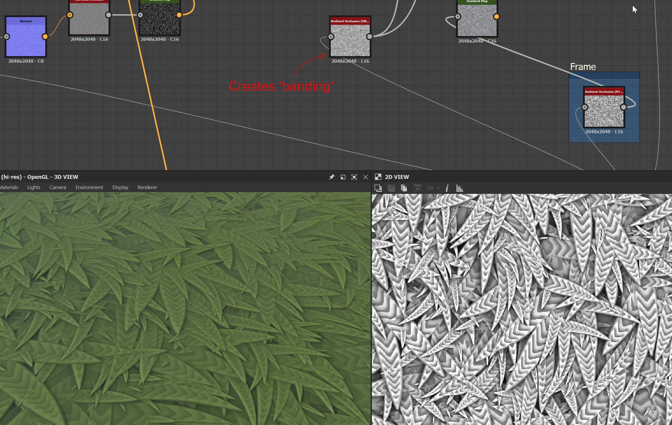 I'm stuck on this issue, this hbAO node causes 'banding' and I don't know why. I've tried so many things but haven't got a clue how to fix it