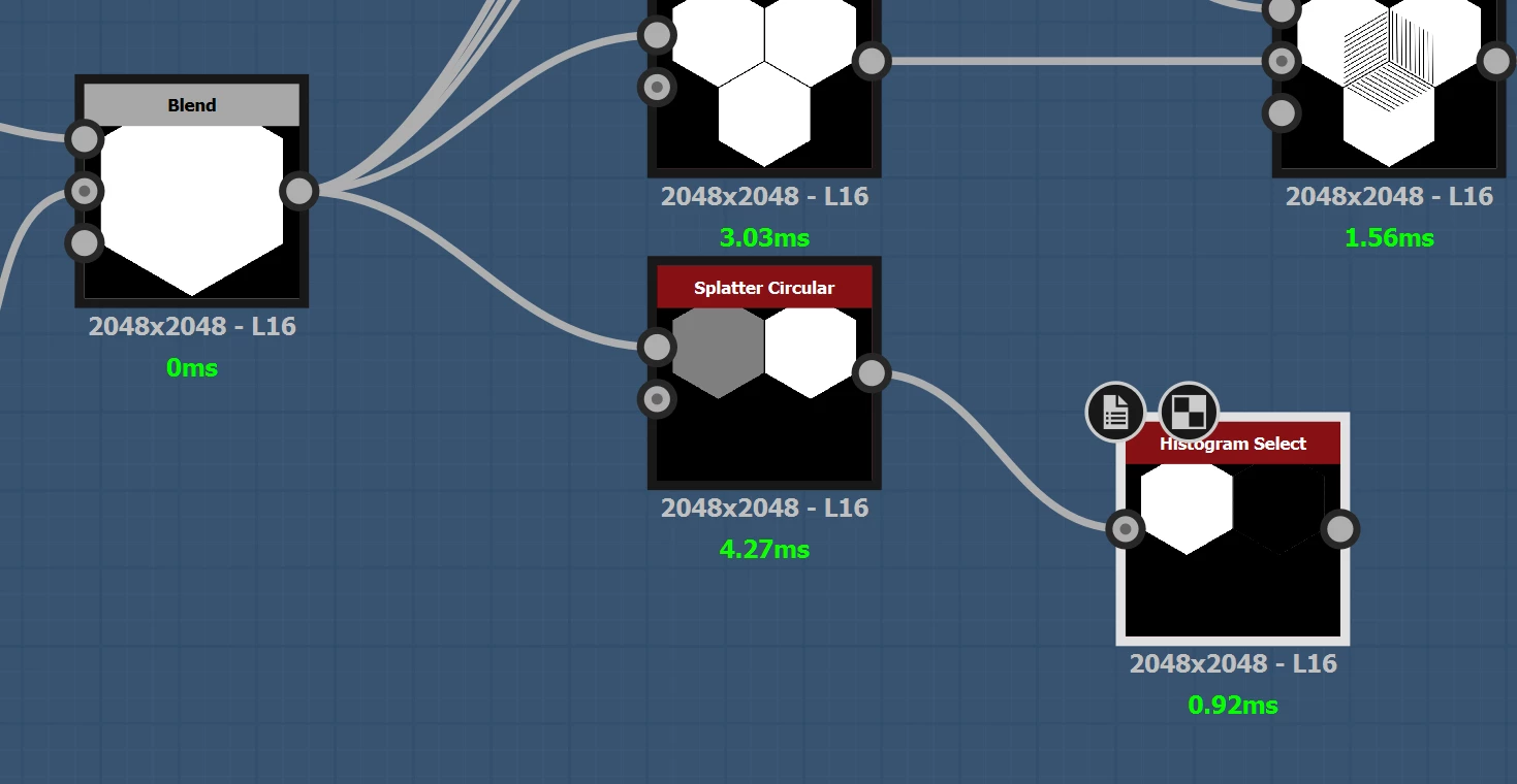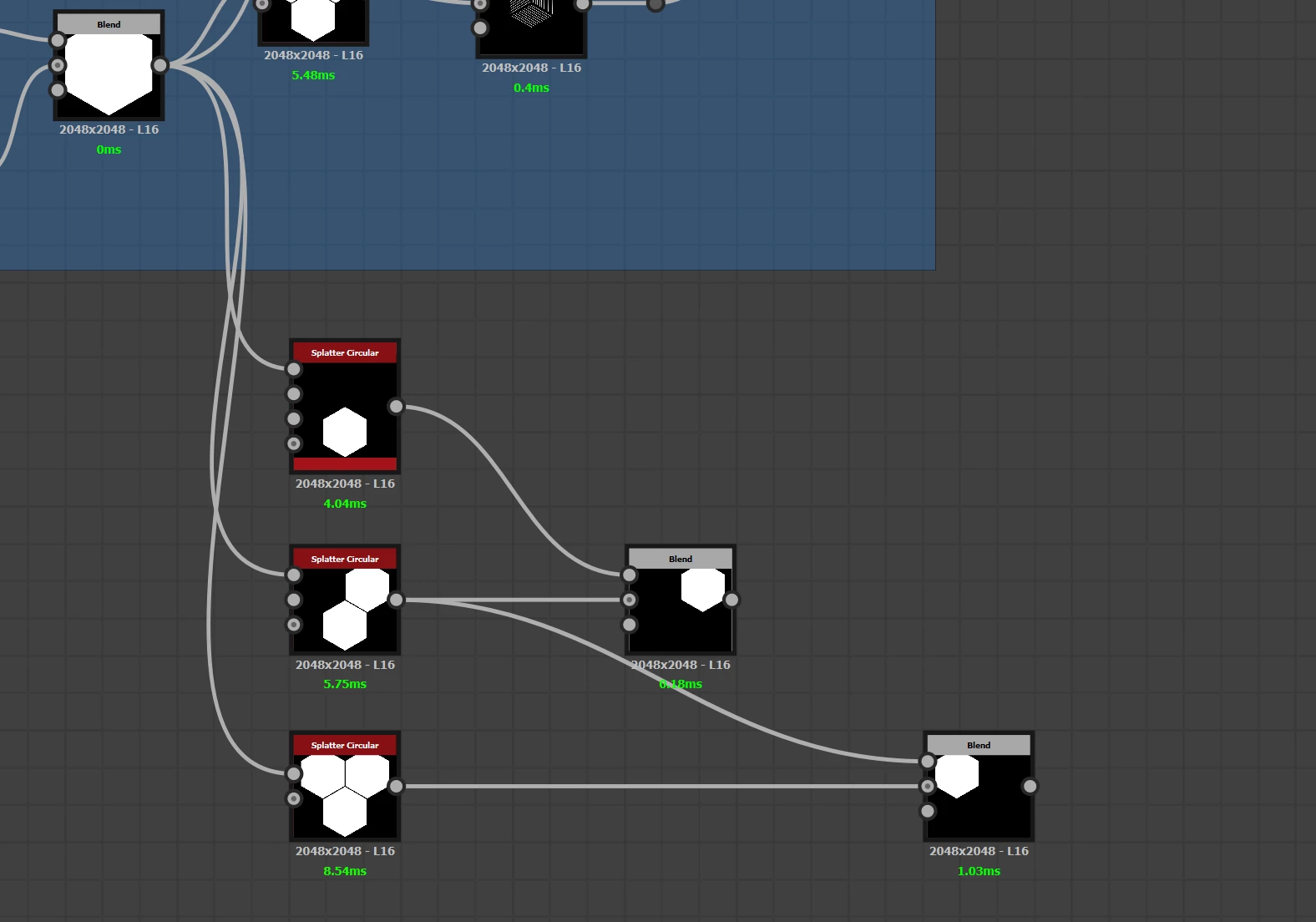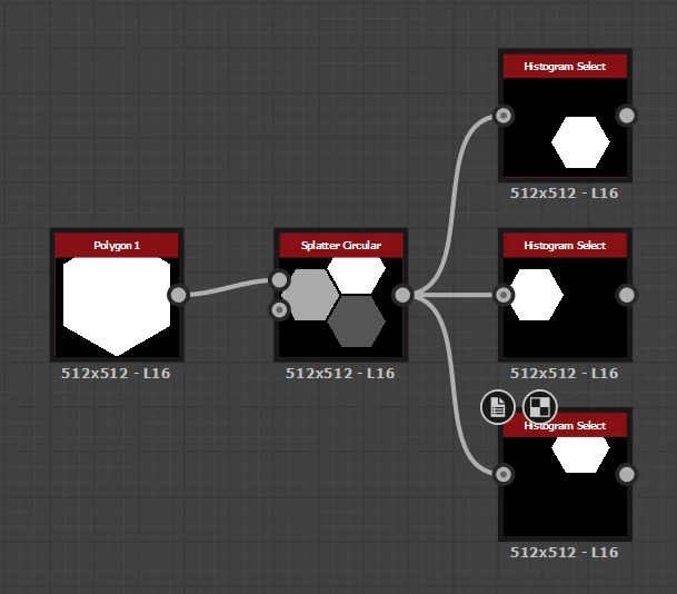 I have a splatter circular with a polygonal shape as input and I repeat that shape 3 times.
