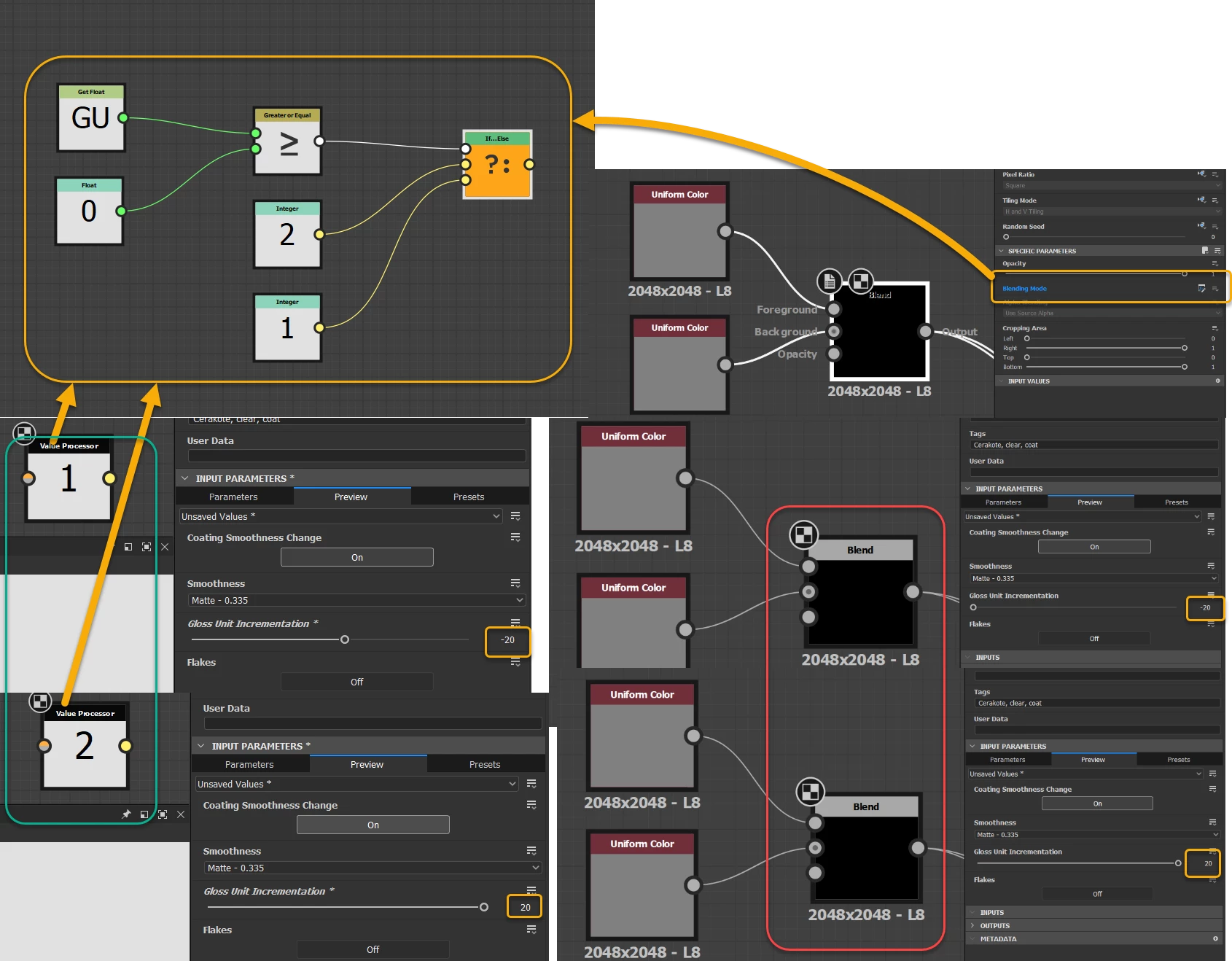 Hi, not sure what is happening there, trying to drive the blending mode by an input user value: