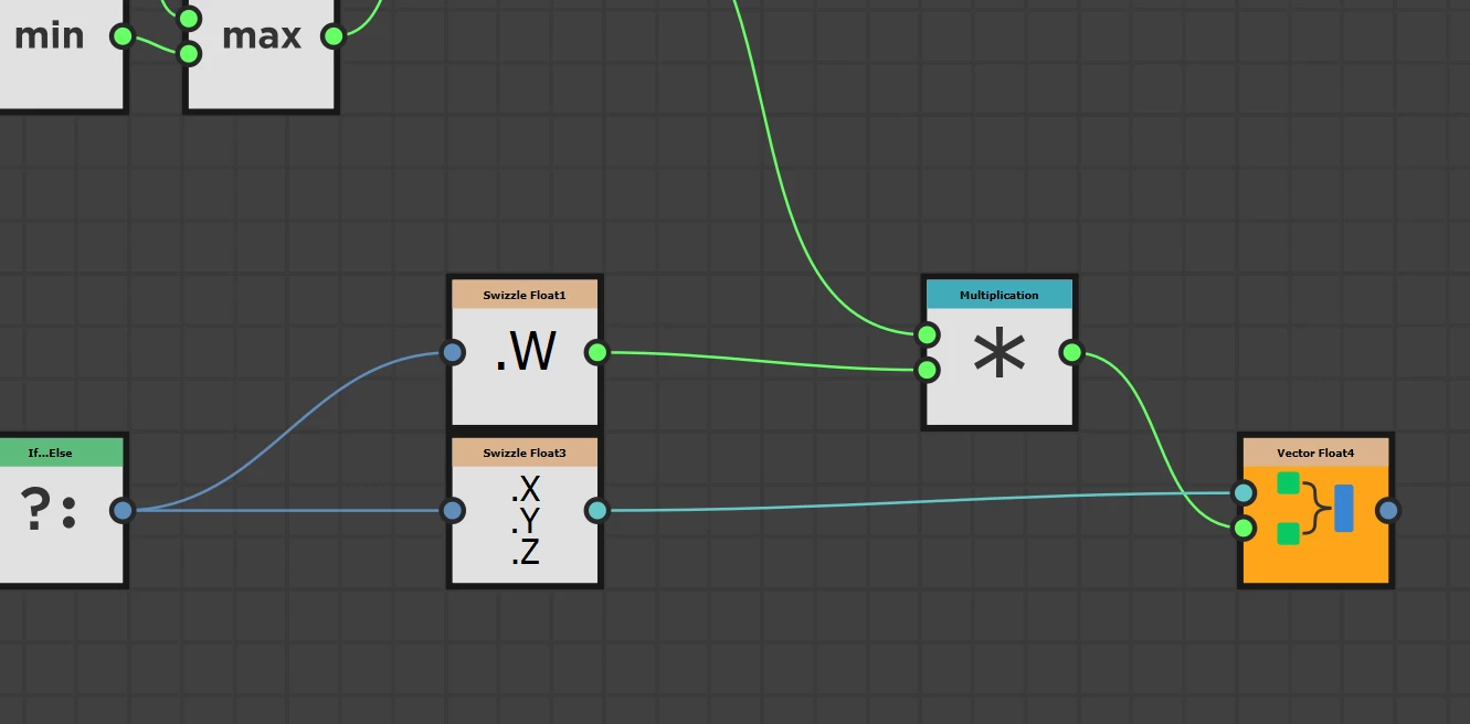 You can see on the output from the pixel processor for the color version it's only multiplying the depth mask over the w (alpha) channel not the rgb channels as well.