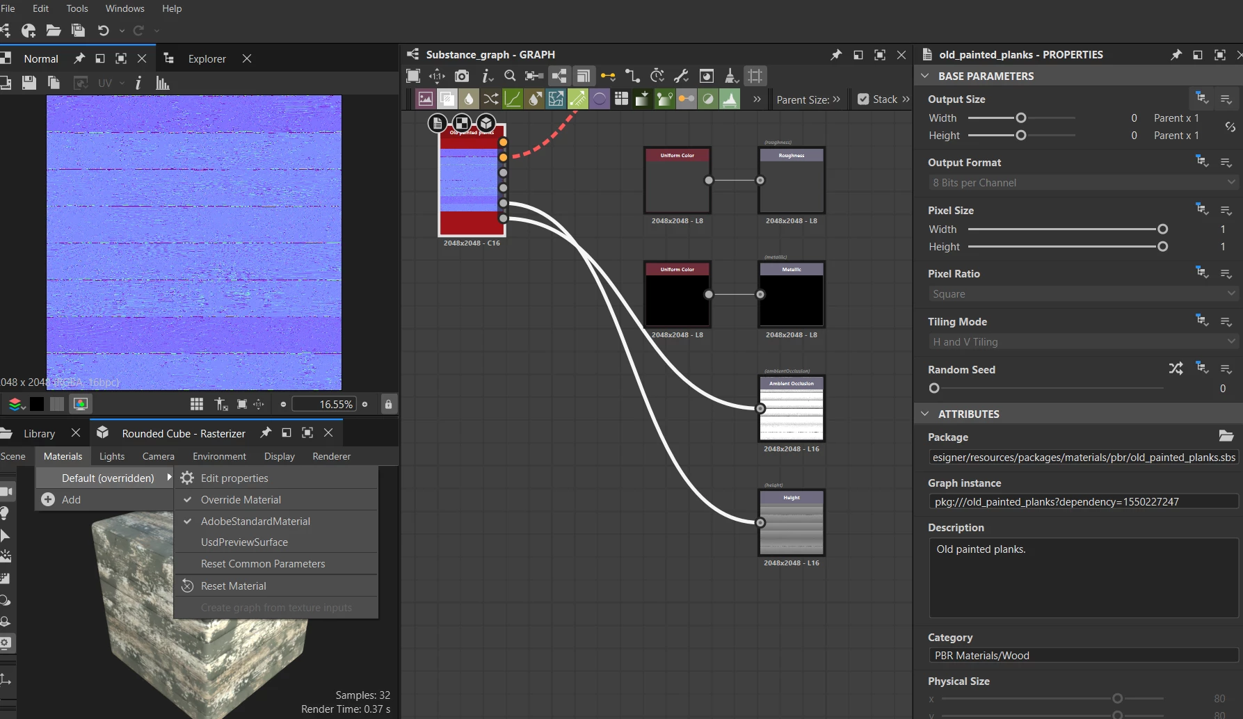 The only material available is AdobeStandardMaterial, and it’s always marked as “default (overridden)”. I don’t see any way to load other shaders.