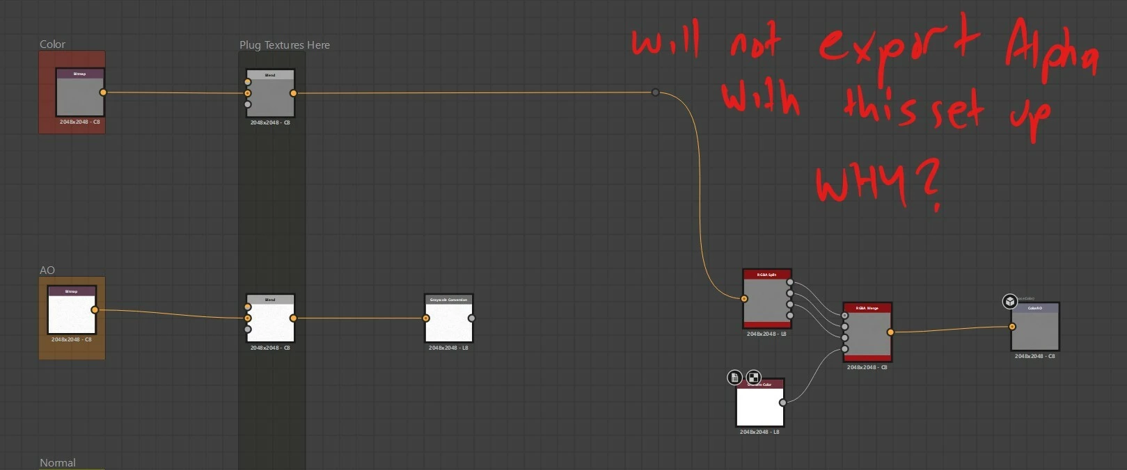 In some cases I don’t need an AO and so I want to pack the alpha channel with all white so my in game shader will still render correctly