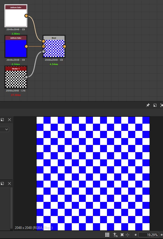 the easiest way would be to use the Checker 1 Node in Designer and use it as a mask for a Blend Node.