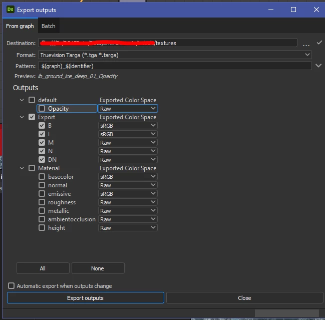 Export the textures of the output node of the specified sSDGraph :param aSDGraph: The graph that contains the outputs to export :param aOutputDir: The output directory used to save the output’s images :return: True if succeed else False