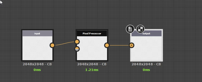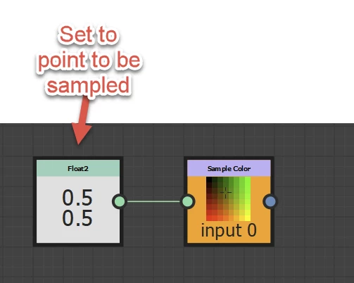In substance 3d designer I have a square tile that needs to change colour from taking a sample of the colour of a disc shape beneath it that has a colour gradient across it. The point the colour sample shall be taken from shall be the centre of the square. The disc beneath it could be rotating beneath the sample point with the discs centre point offset from the centre of the square. The colour of the square needs to update at a max of 60 fps.