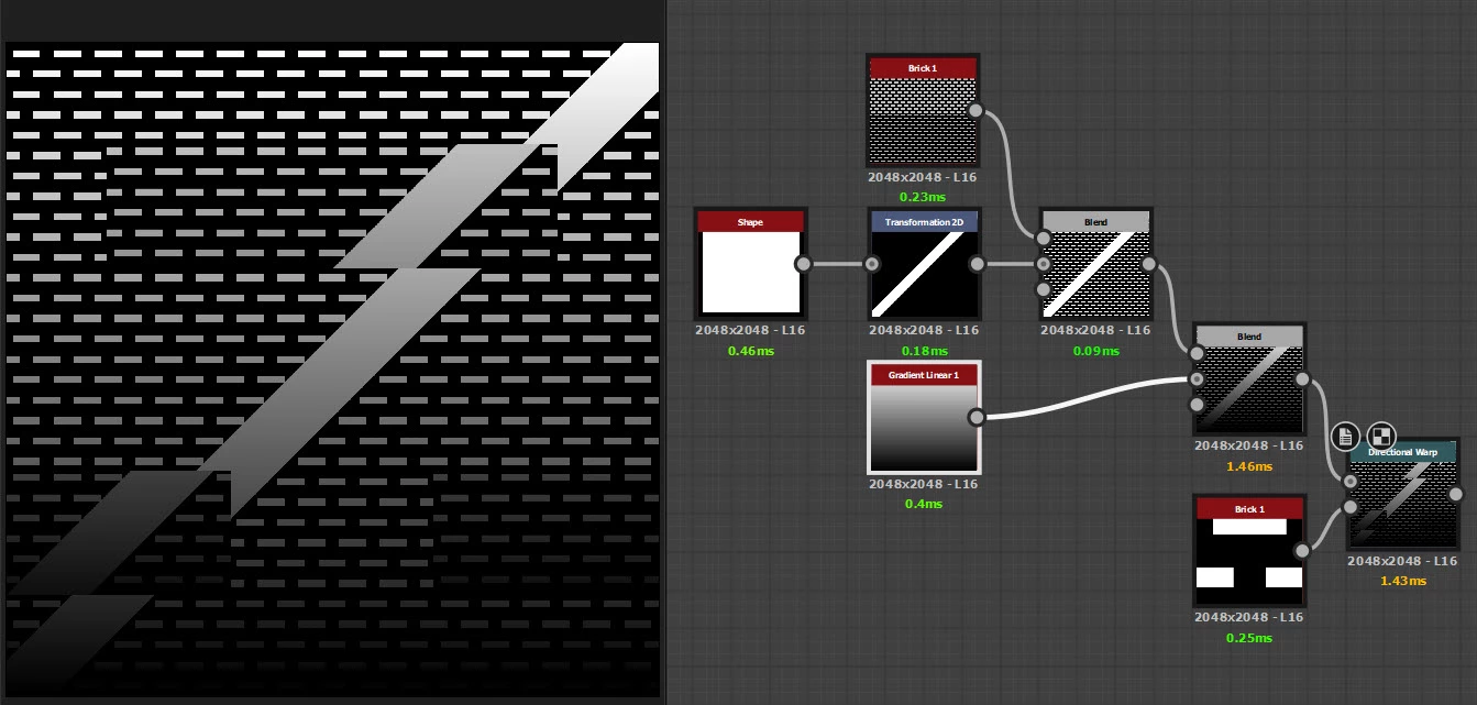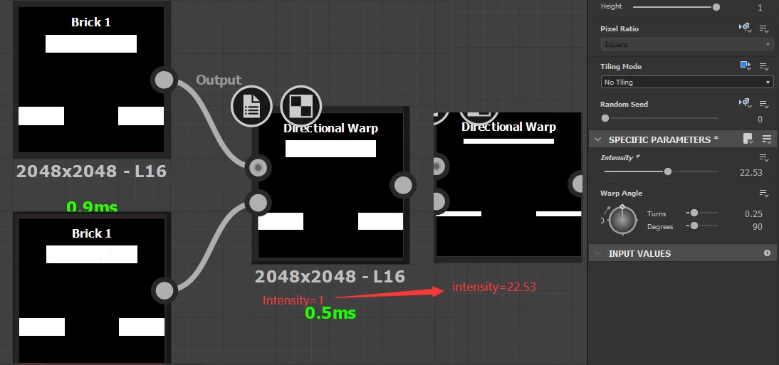 Like the graph shows above, I was expecting the output of the D_warp node to produce same width bricks with relatively same offset distance for each pixel, but as a result while the intensity went higher , those brick widths went more and more narrower.