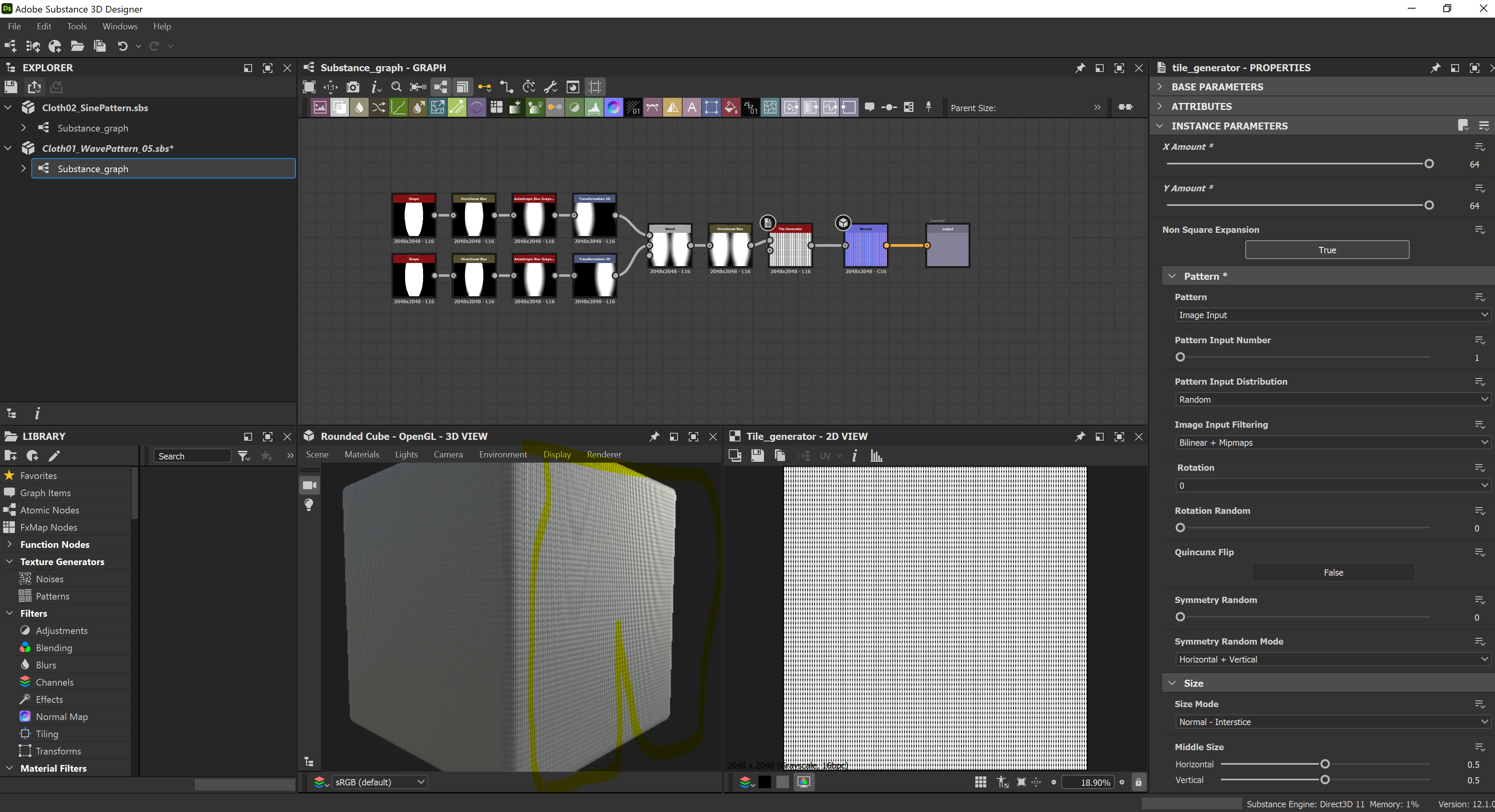 It looks like a moire pattern which occurs on very fine repeating patterns that have been rendered on a similarly fine grid (in this case the render camera pixel grid). It also happens when photographing fine patterns with a high resolution digital camera. The only way around it is to adjust the pattern in releation to the camera or , as done in most digital cameras with an anti-aliasing filter, soften the image very slightly. In Designer BlurHQ at a very low intensity would do this.