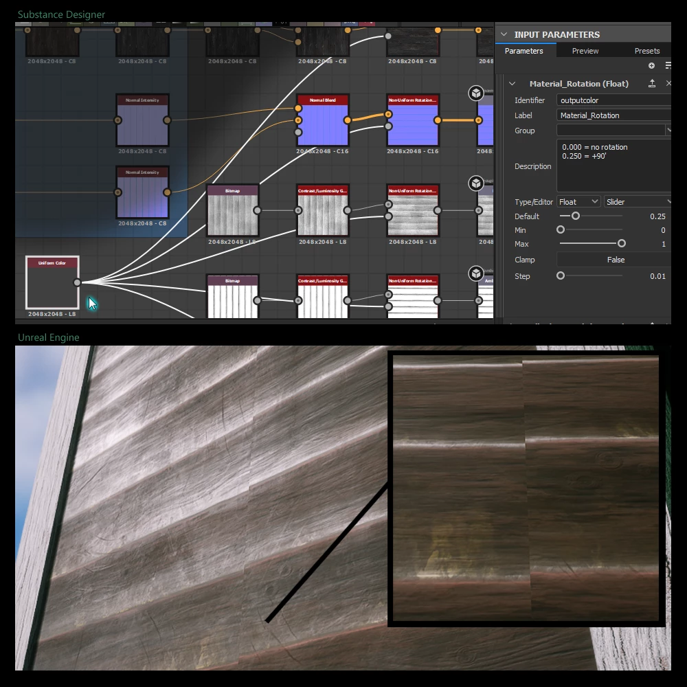 Am I using the wrong method in order to expose a 90º rotated material variation, or would I have to create a new set of bitmaps & a separate .SBSAR to achieve this?