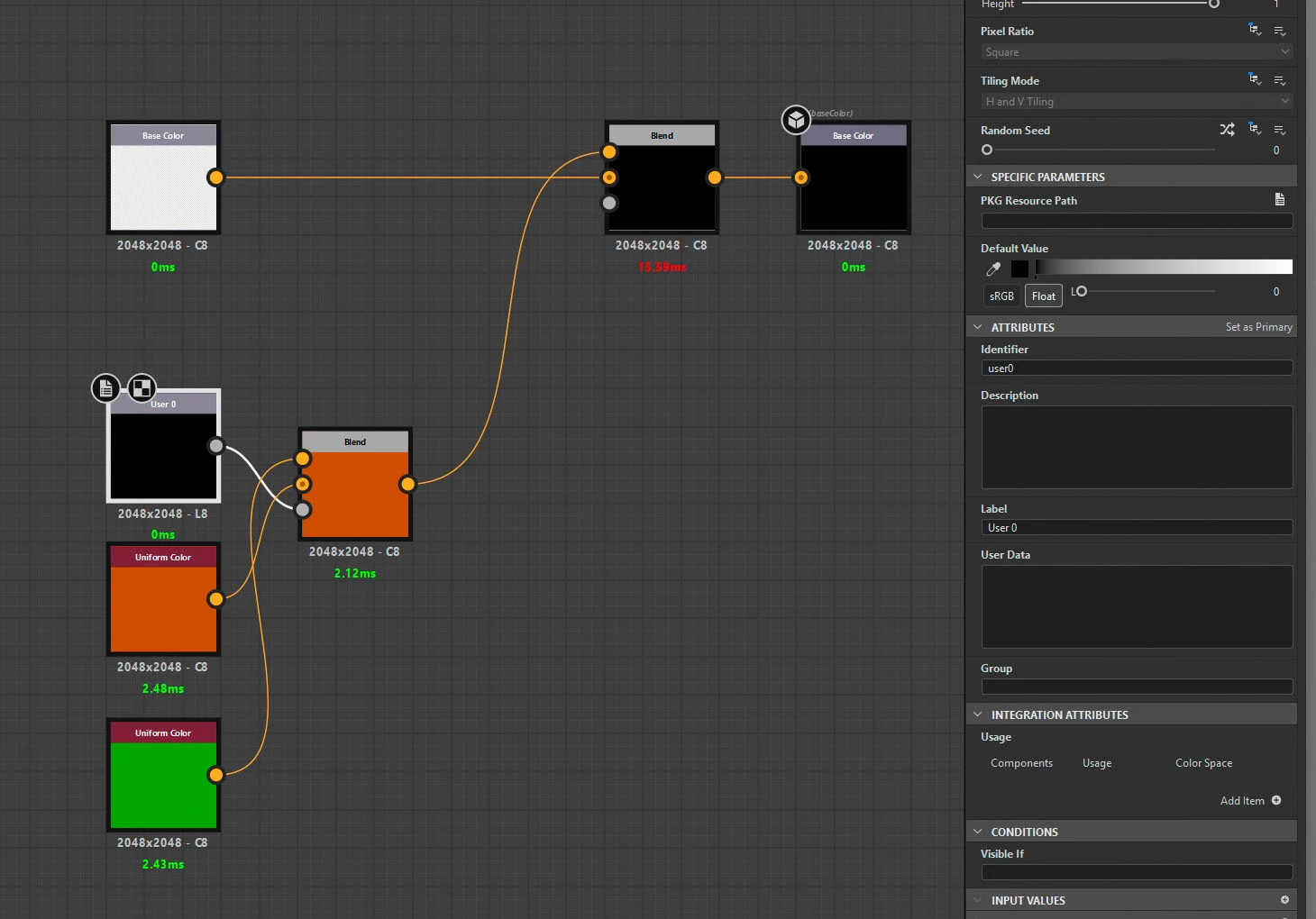 Note: I AM able to modify the basecolor using itself as an input, I can also write something to the user channels but I can't use THEIR value as input.