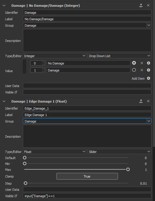 This appears to be a bug either in the export or in the way Substance Painter is presenting the parameters. I've just tried it with another simple test material and get the same results.