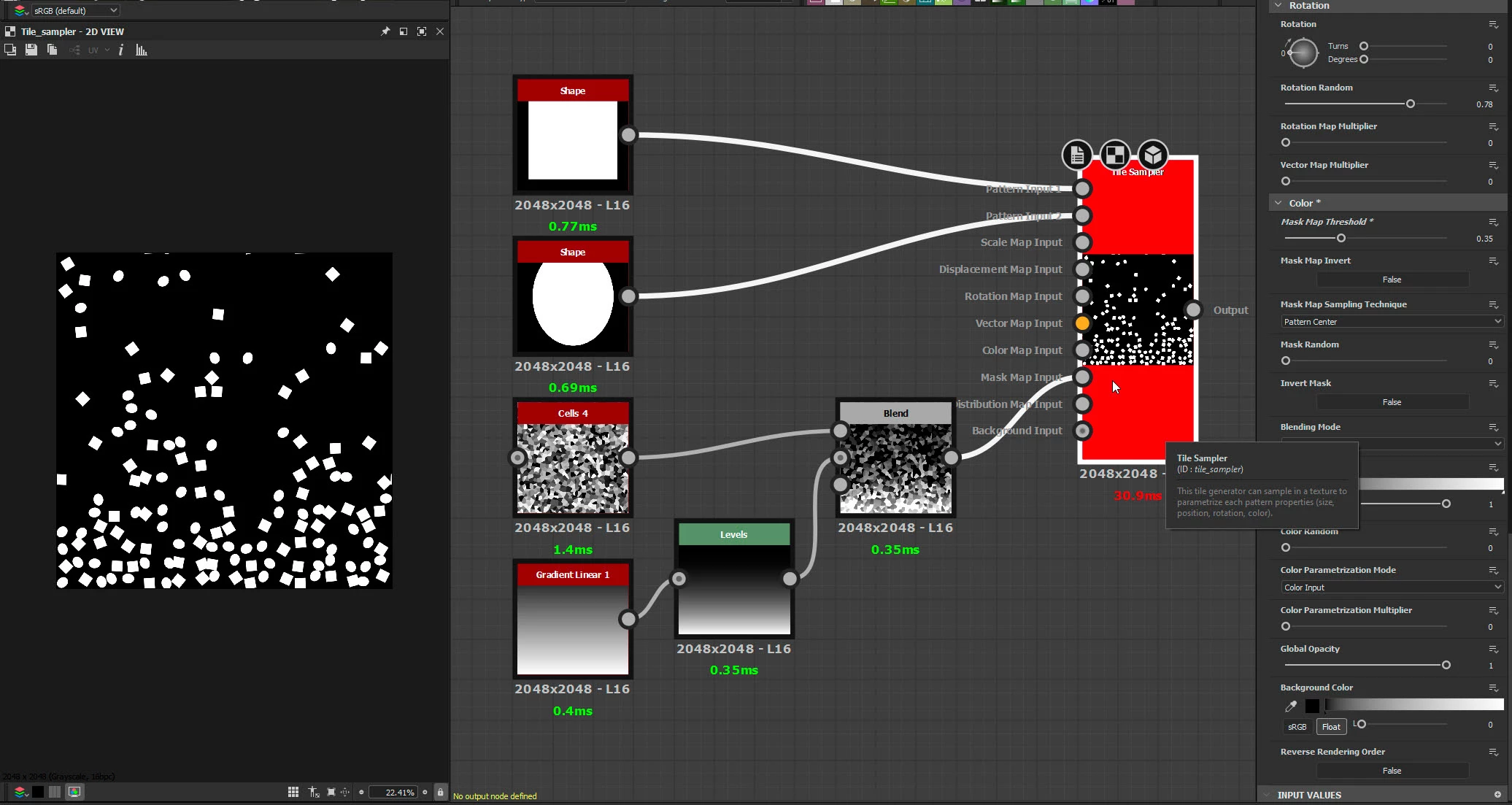 Play with the Levels mid grey setting, the Blend opacity setting and the Tile Sampler Mask Map Threshold. All three interact.