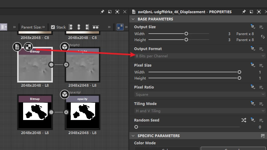 I created the node and passed the parameters, but when I open the file, it still defaults to 8-bit