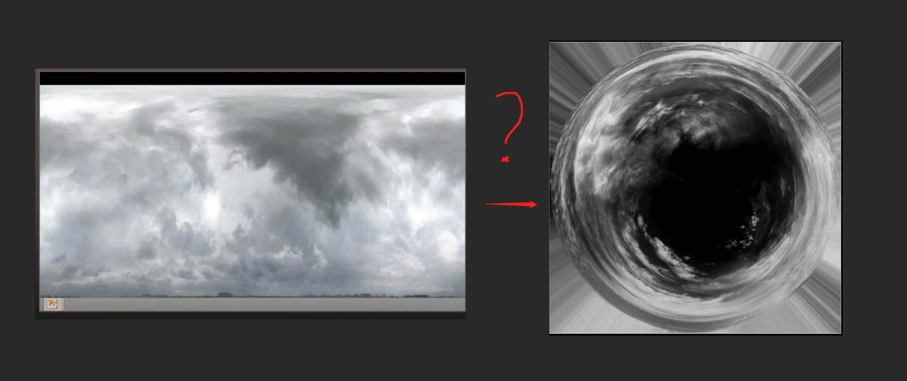 I want to convert a 2048X1024 HDR texture to a 2048X2048 dome texture