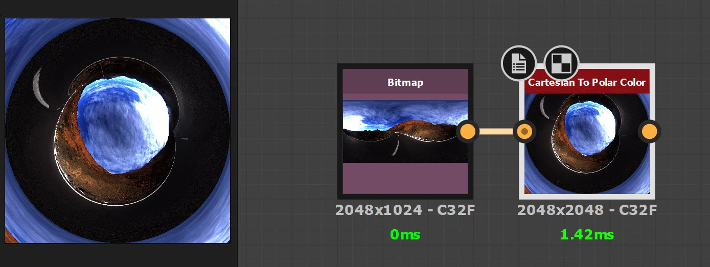 Cartesian to Polar Color - set the inheritance of the node output size to absolute and 2048 x 2048